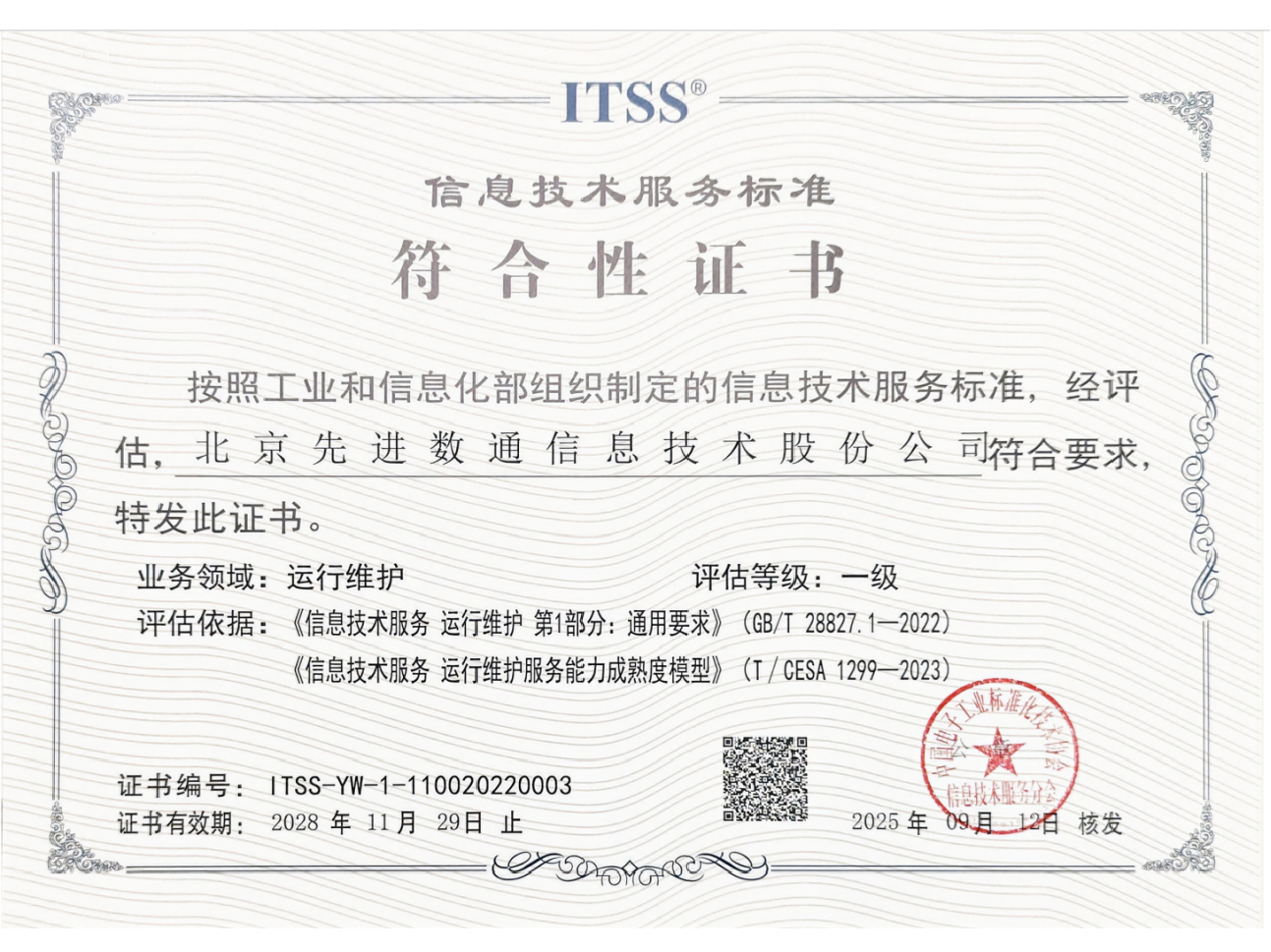 • ITSS符合性证书成熟度(一级)